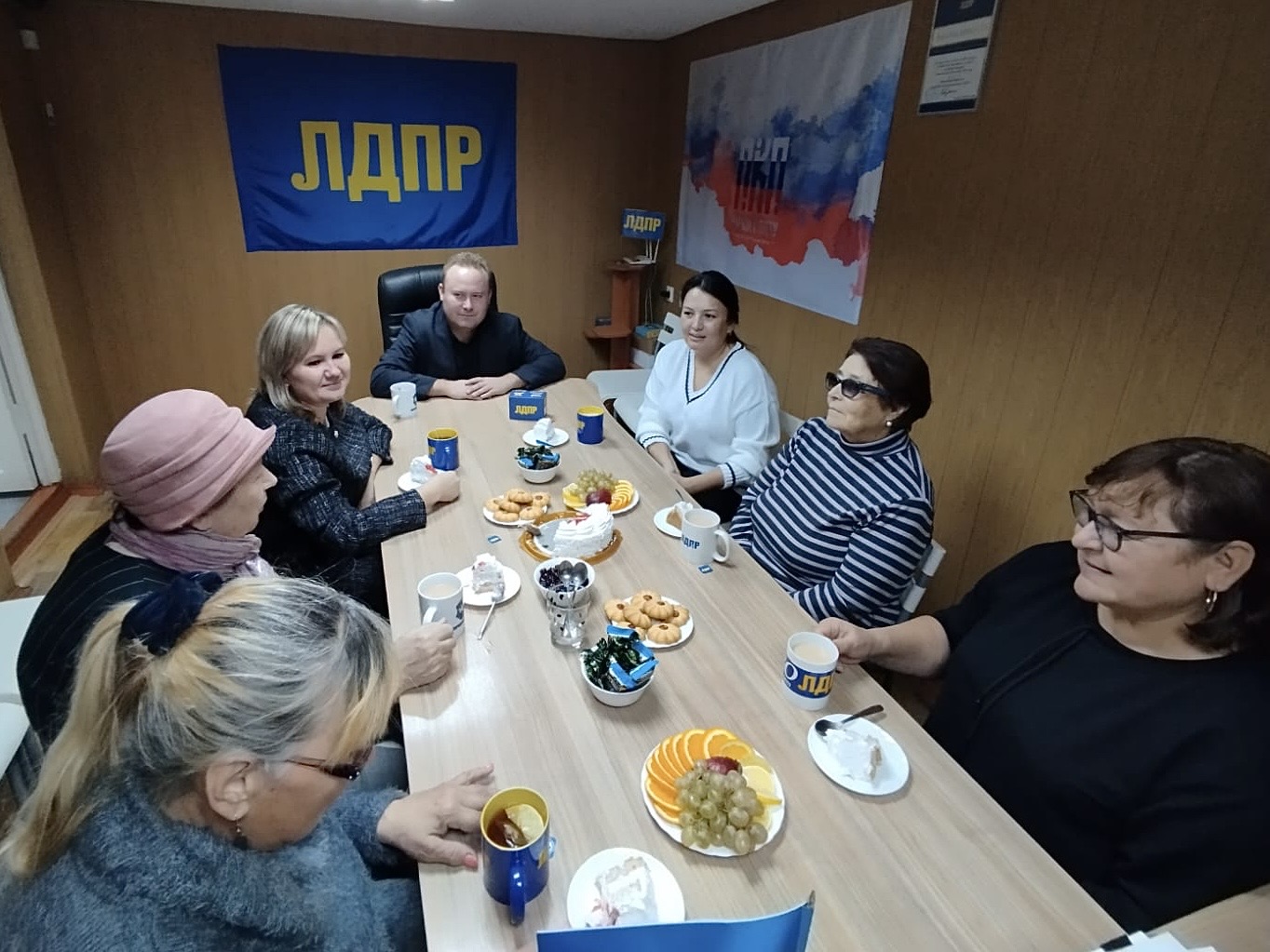 Представители ЛДПР вручили женщинам подарки от ЛДПР, завершив встречу памятным фото на память.