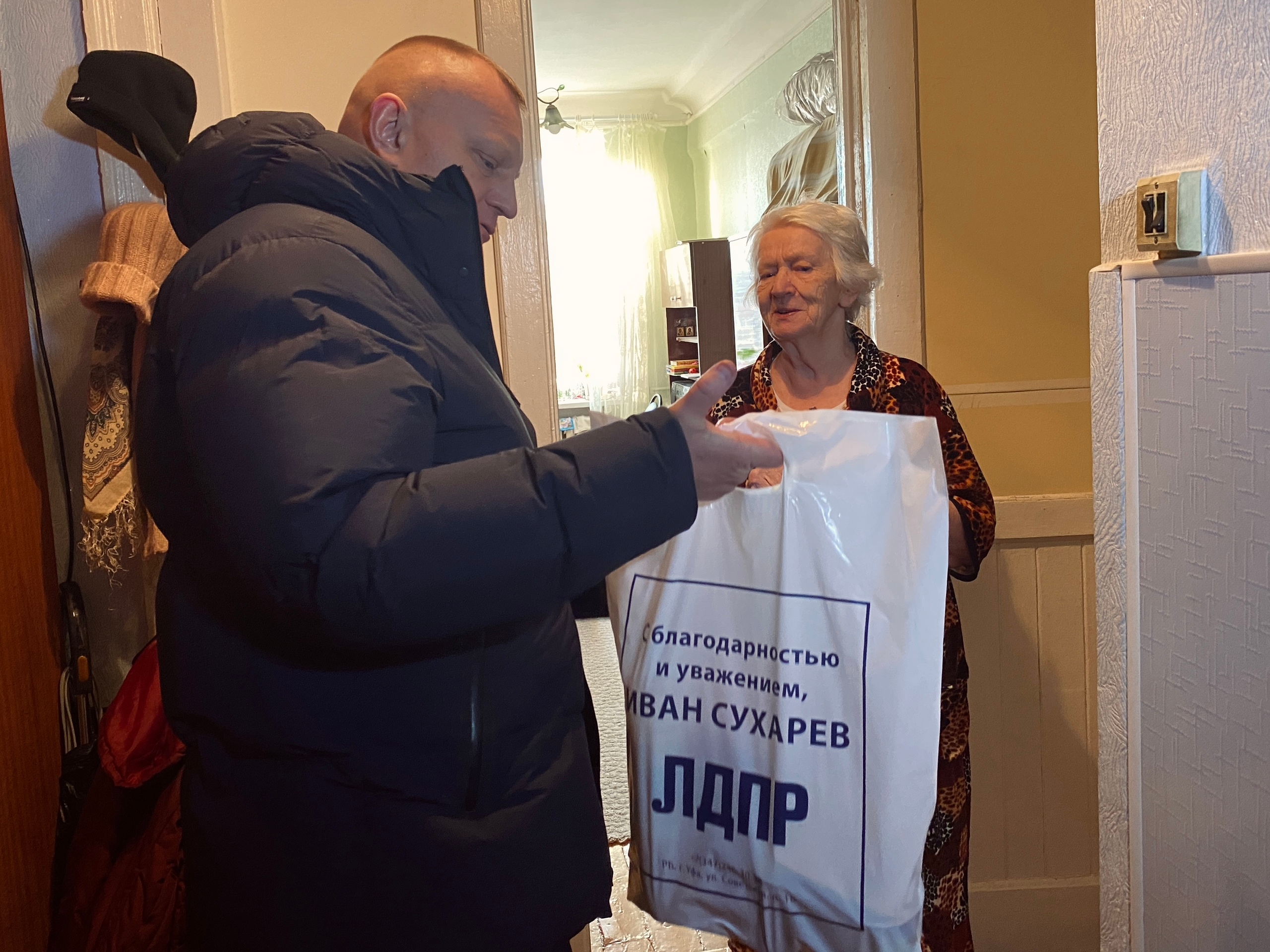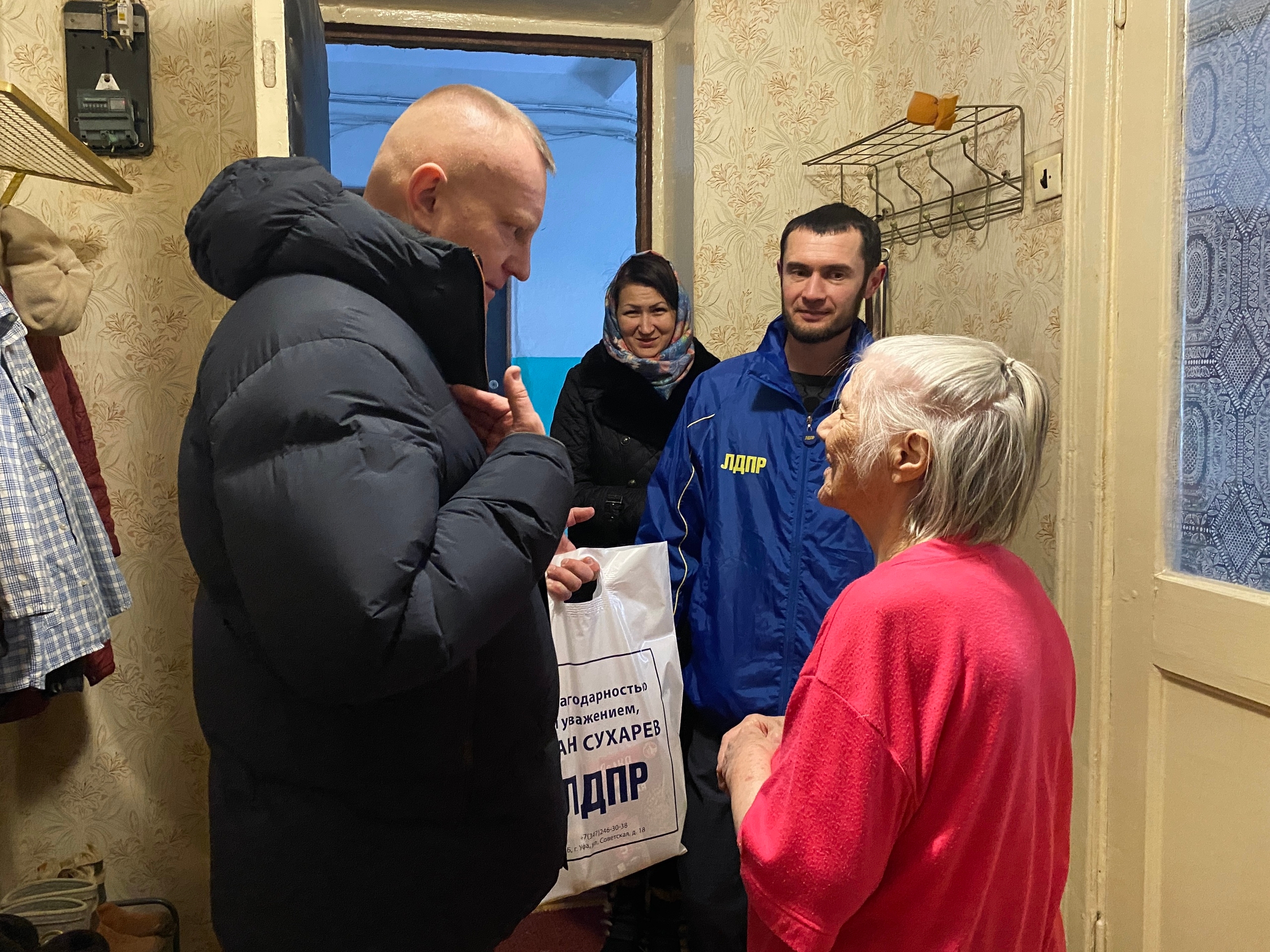 В рамках всероссийской новогодней акции «ЛДПР помогает», инициированной Председателем партии Леонидом Слуцким, депутат Госдумы Иван Сухарев посетил представителей старшего поколения в Уфе, чтобы поздравить их с наступающим праздником и оказать адресную поддержку.