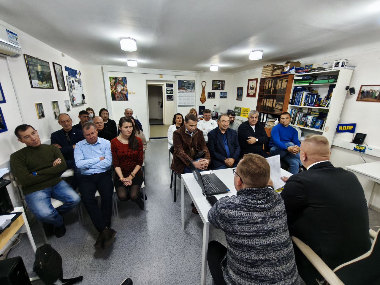 Тема совещания - итоги XXXVII съезда политической партии ЛДПР-Либерально-демократической партии России.