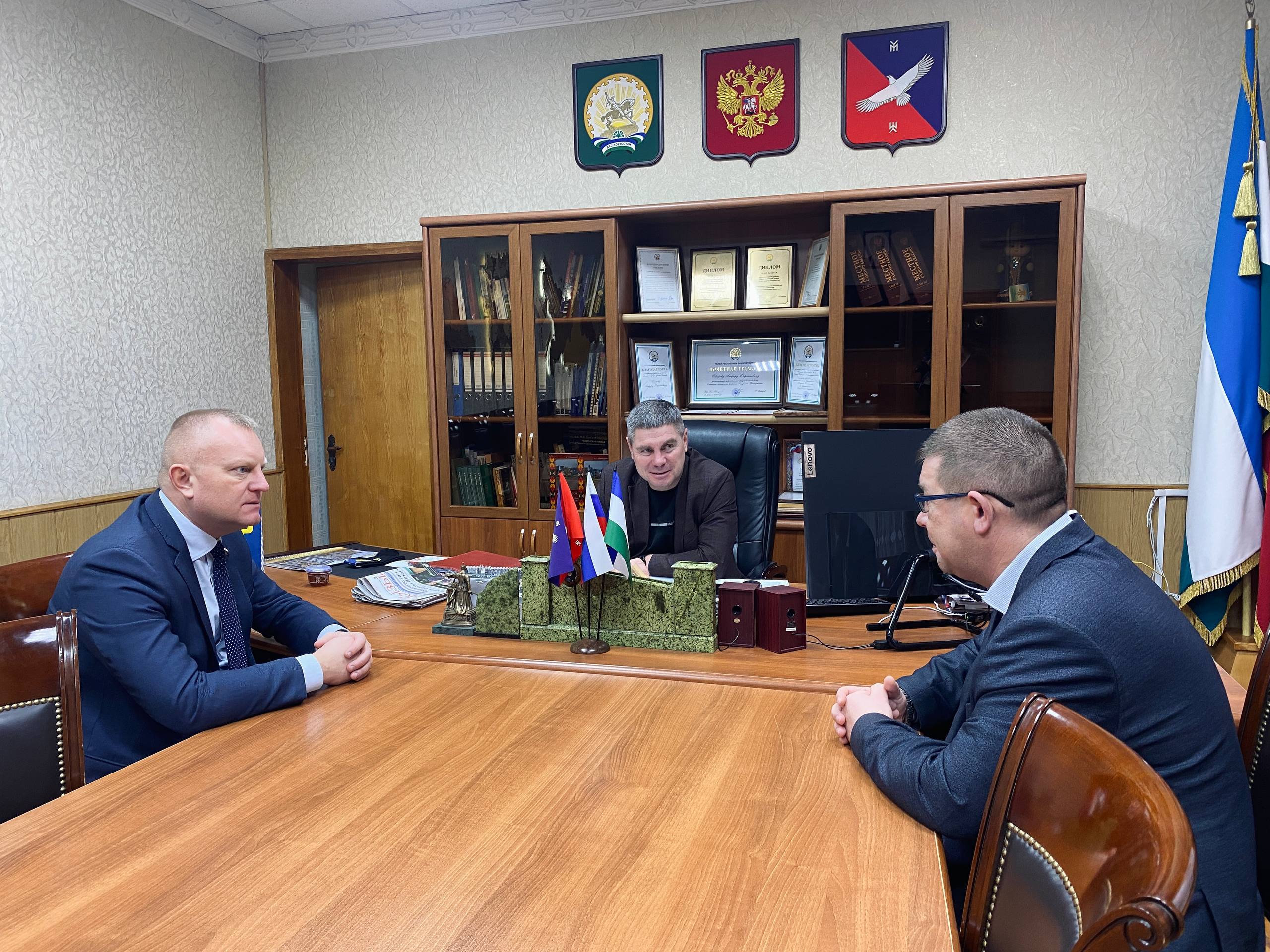 В селе Кармаскалы совместно с однопартийцем - главой сельского поселения Карламанский сельсовет Азатом Ахметьяновым Иван Сухарев встретился с главой администрации Кармаскалинского района Альфиром Сабировым.