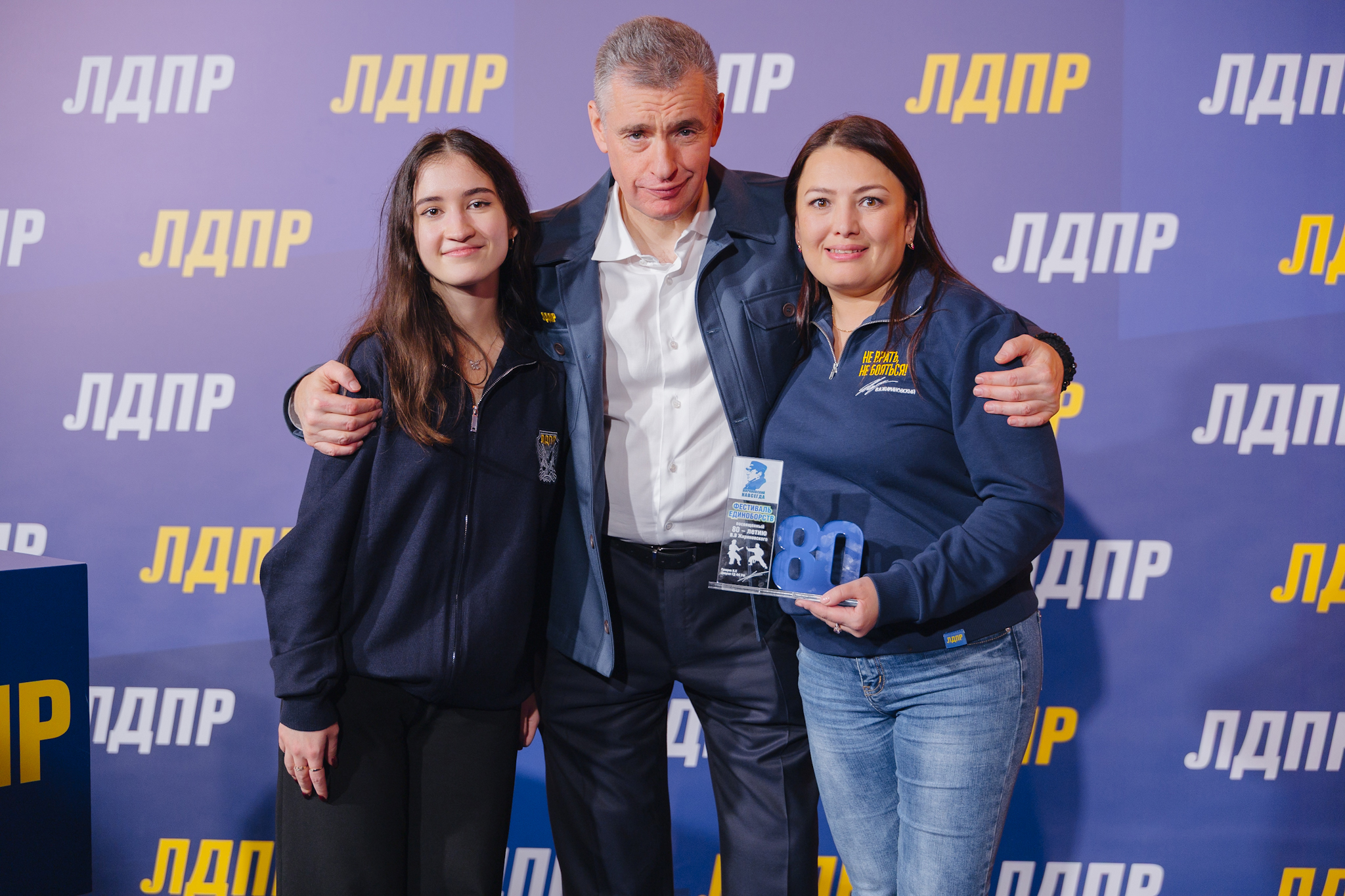 В завершающий день слёта башкирские партийцы вручили Лидеру ЛДПР Леониду Слуцкому журнал и памятную статуэтку с Фестиваля единоборств в Уфе – одного из первых мероприятий, организованных в честь 80-летия Основателя ЛДПР.